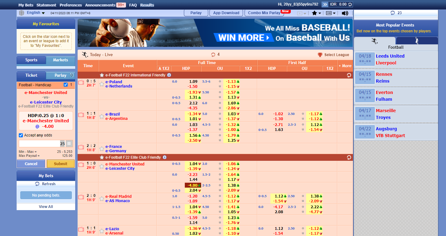 Angka -1.09, itu adalah nilai pajak jika Anda memegang under 3.50. Kalau Anda pegang under senilai 100.000, kalau kalah akan kena 100.000 x 1.09= 109.000, dan kalau menang hanya mendapat sesuai nilai pasangan Anda atau 100.000.